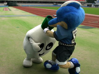 川崎が誇るマスコット登場! ふろん太とピーカブー。 その頃、等々力では川崎が誇る2大マスコットが登場。 そしてもう、こいつらはやりたい放題(笑)! その1・その2・その3・その4・その5・その6 |