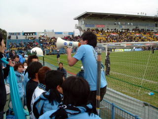 | J1開幕! 待ちに待った夢舞台、 2005年J1リーグ本日開幕です! 開幕戦の相手は柏レイソル。 応援家・野崎氏のラッパも高らかに、 意気揚々とアウェイ柏に乗り込みます。 |