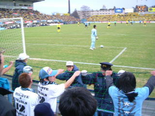 柏サッカー場 柏といえば2000年に降格が決まった因縁の地。 あの涙から5年、再びここに戻ってくることが出来ました。 さぁ燃えるぞ! |