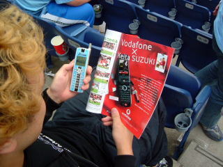 携帯も変わったなぁ F501フロンターレバージョンって知ってる? 金髪さんはいまだに愛用しています。 …モノクロ液晶の文字はもはや判別不能だけどね。 金髪さん、最新のVodafoneの広告が気になる模様。 |