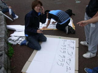 似合うぞ、アンちゃん 試合後、Gゾーン前で挨拶をするGK安藤選手。 バナナのかぶり物がやたら似合いますね。 もう明日にはU−22日本代表に合流するアンちゃん。若き日本の守護神として、ロンドン五輪に向け、まずは予選突破だ! |