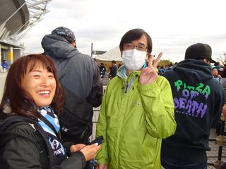 | 生きてたタニモト氏 前節、セレッソ大阪戦でサポーターが掲げていたパネルの影響で一躍人気者になったというタニモト氏。スポーツ新聞の号外の写真や、夜のニュース番組にも映りまくってましたね(笑) タニモト氏 「さっき『亡くなったのかと思った』って言われましたよー」 |